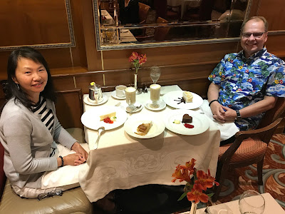 Ah, back aboard the Diamond Princess just in time for dinner. Alice and I ordered wine. Such a nice meal after a wonderful day in Taipei. We hope to be back again soon!